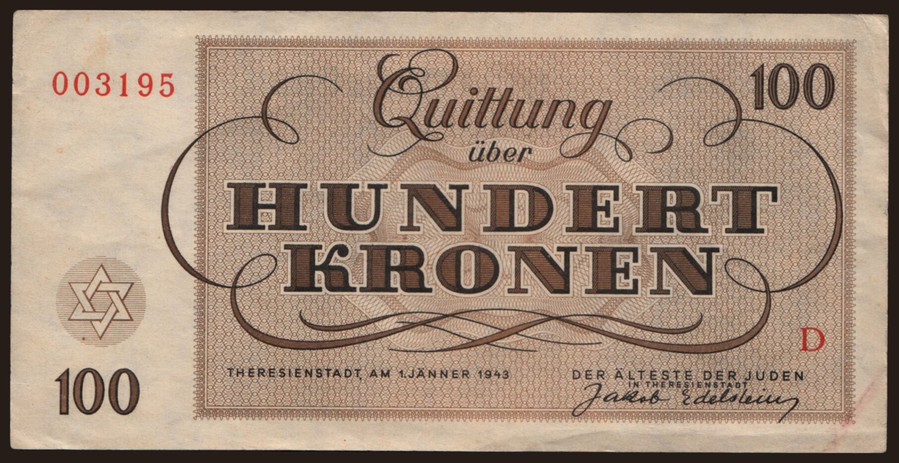 Theresienstadt, 100 Kronen, 1943