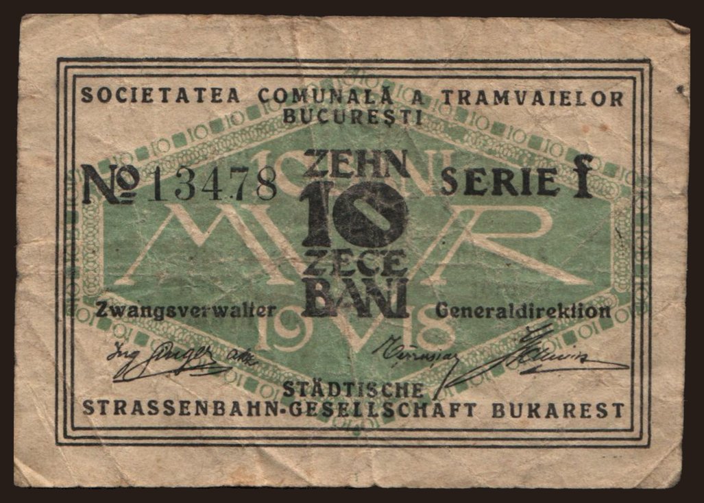 Societatea Comunala a Tramvaielor Bucuresti, 10 bani, 1918