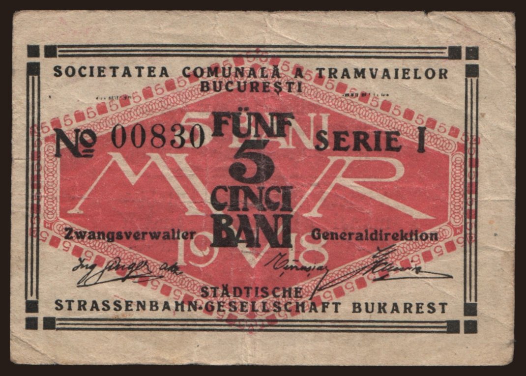 Societatea Comunala a Tramvaielor Bucuresti, 5 bani, 1918