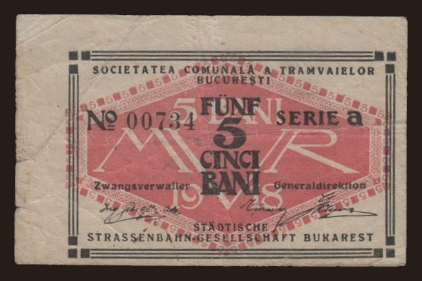 Societatea Comunala a Tramvaielor Bucuresti, 5 bani, 1918