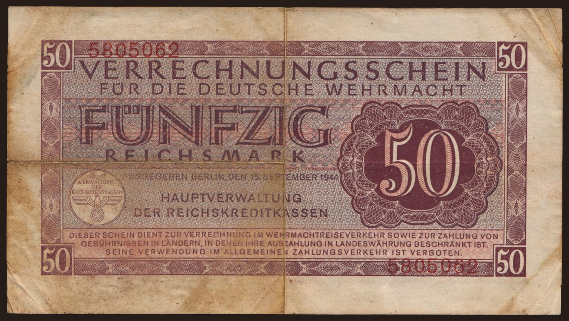 Wehrmacht, 50 Reichsmark, 1944