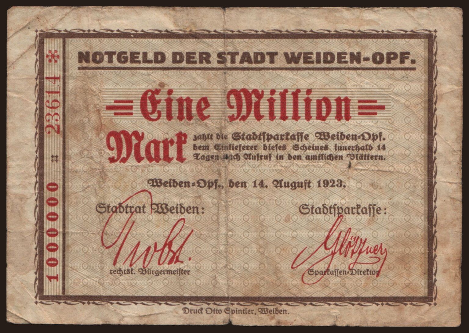 Weiden/ Stadt, 1.000.000 Mark, 1923