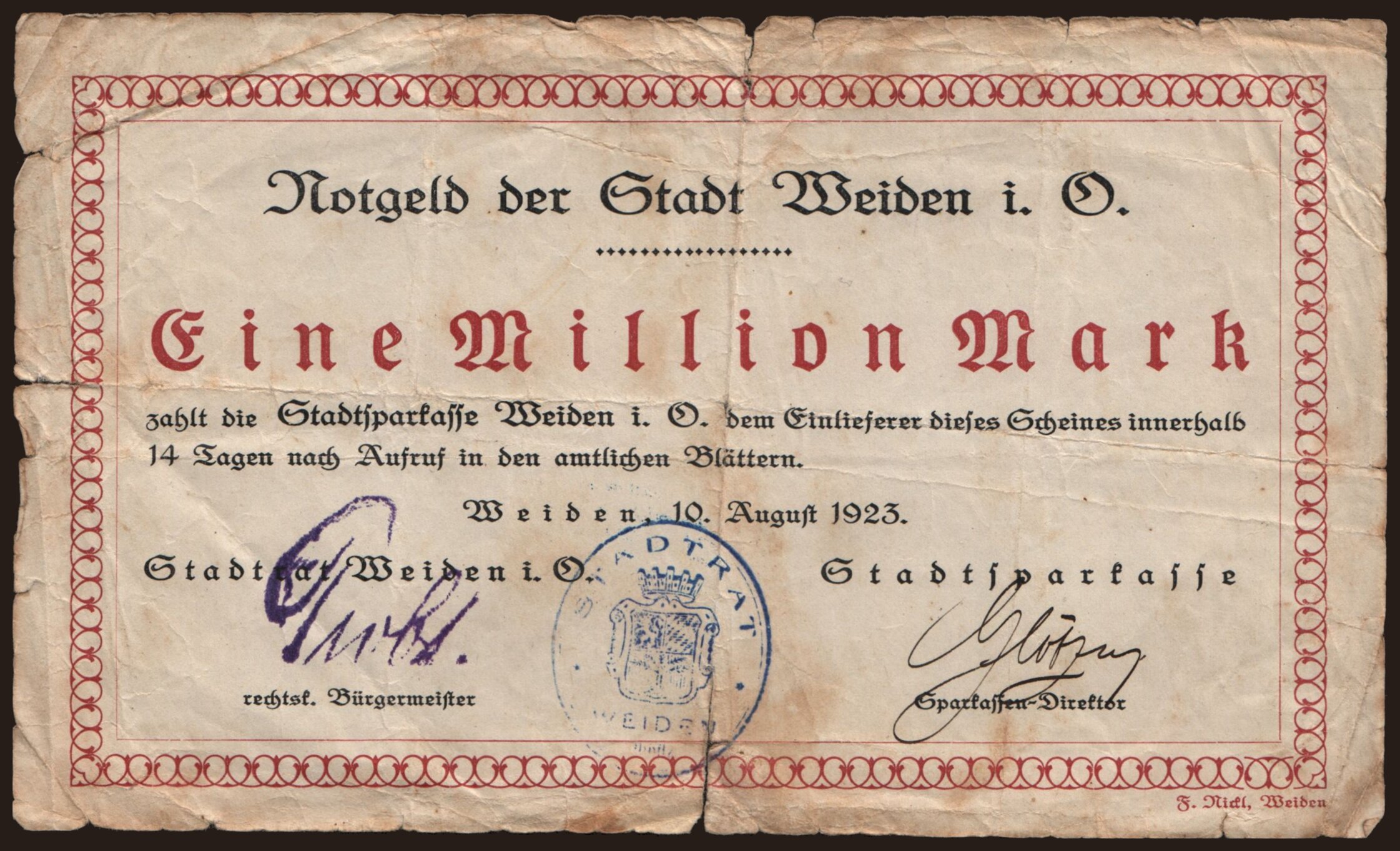 Weiden/ Stadt, 1.000.000 Mark, 1923