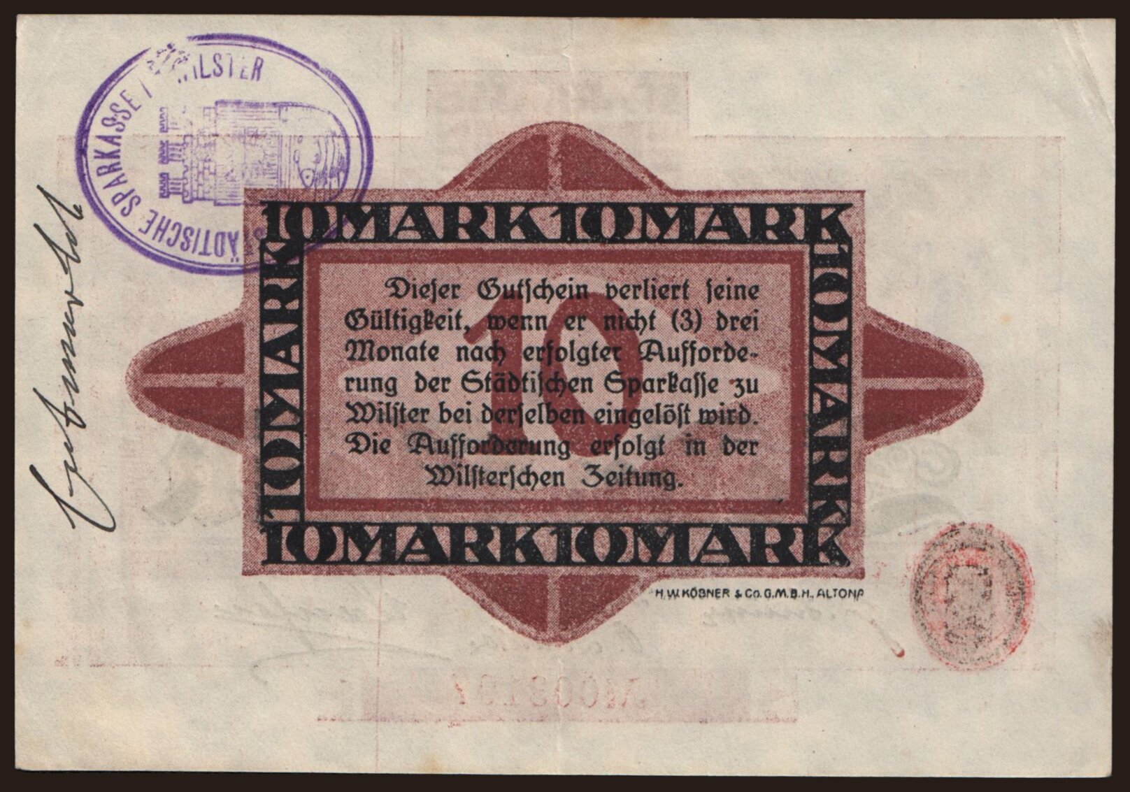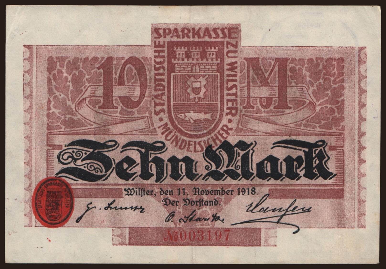 Wilster/ Städtische Sparkasse, 10 Mark, 1918