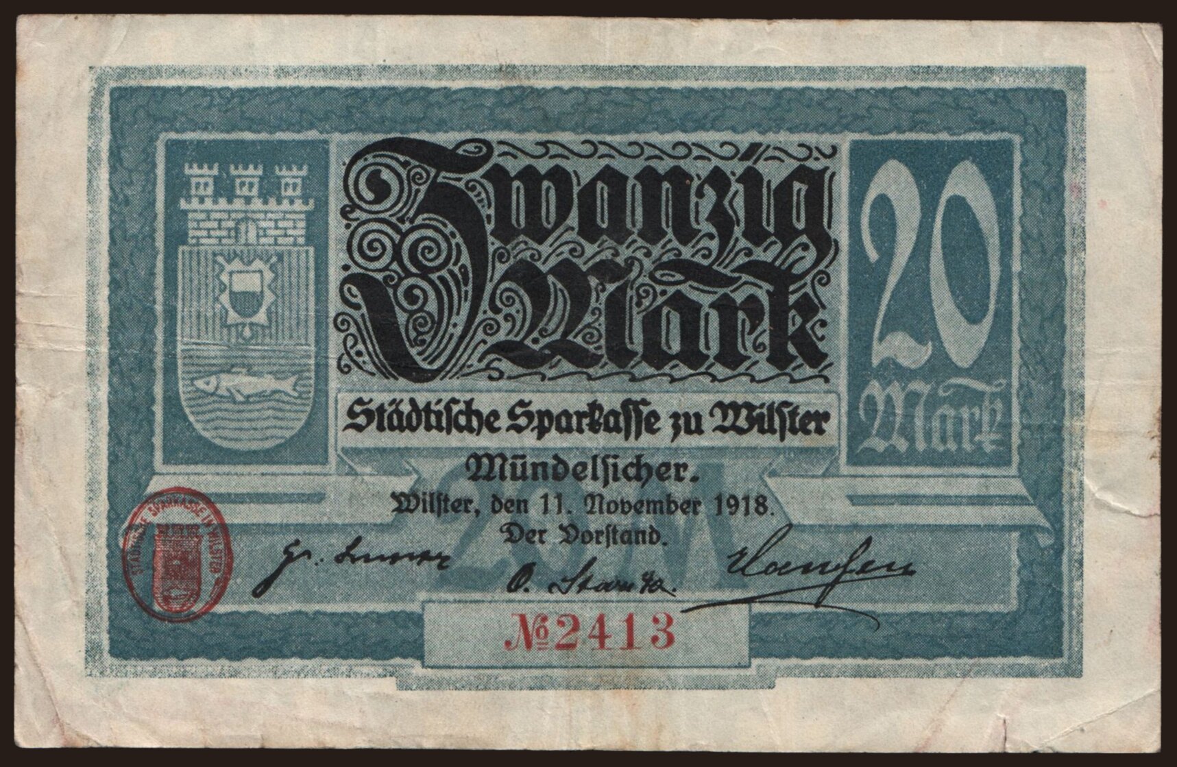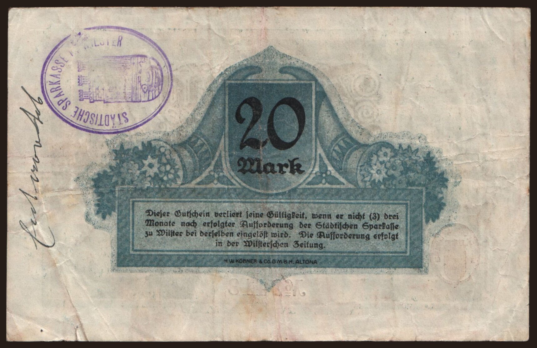 Wilster/ Städtische Sparkasse, 20 Mark, 1918